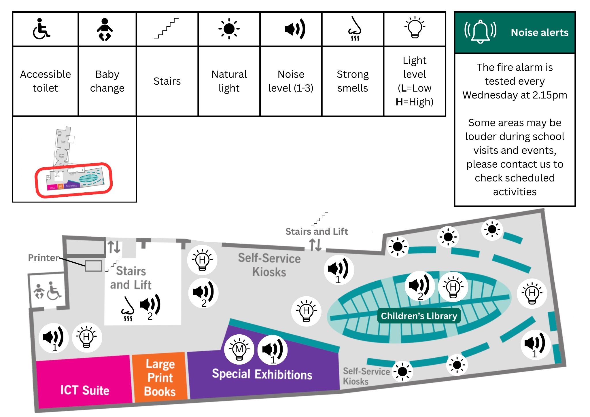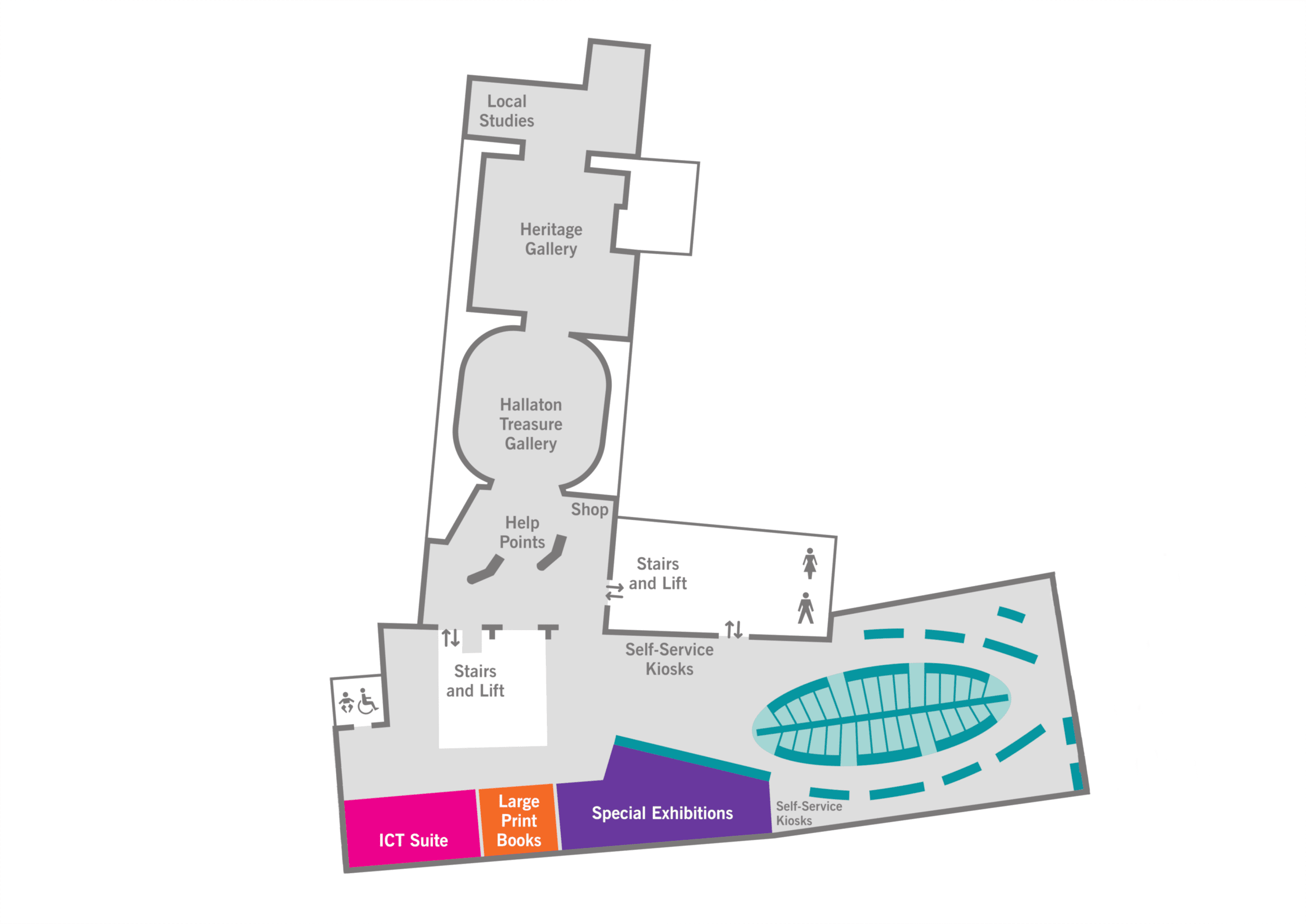 Market Harborough Library and Harborough Museum are based on the first floor of The Symington Building. You can view our sensory map so you know what sounds, smells and light levels to expect when visiting.