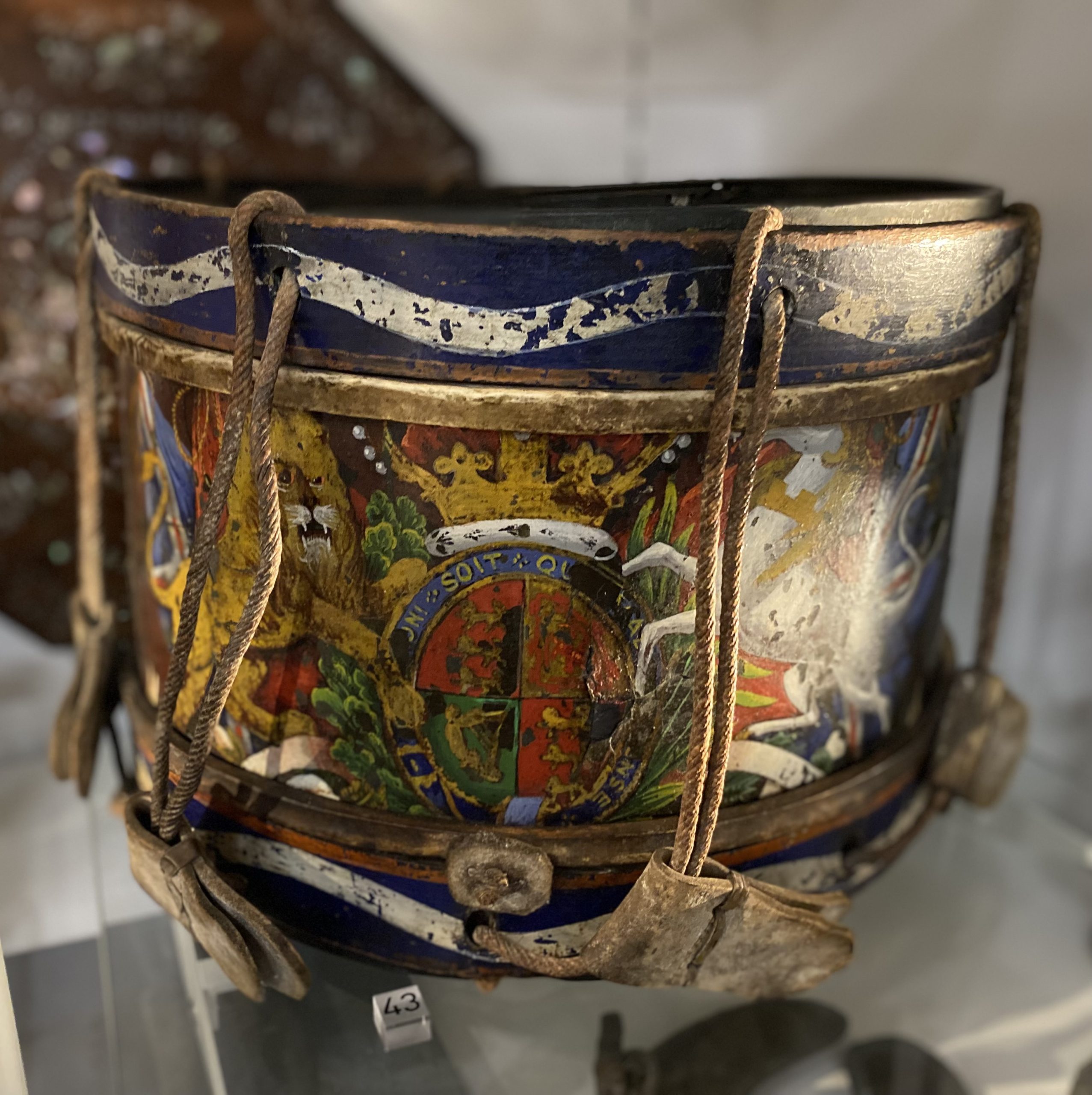 Drummer uniforms were often more ornate than those of privates to make them easily visible on the battlefield. It was normal military practise in the early 19th century to recruit boys as drummers. This was important as they learned how to use drum rhythms and beats to signal officer’s commands and were used as a rallying point.